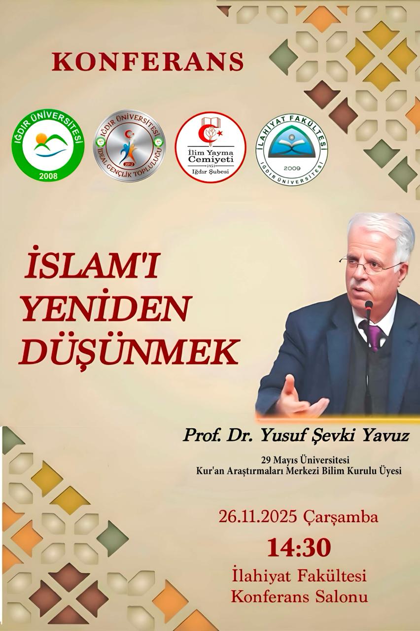 29 Mayıs Üniversitesi Kur’an Araştırmaları Merkezi Bilim Kurulu Üyesi Prof. Dr. Yusuf Şevki Yavuz, 26 Kasım Çarşamba günü saat 14.30’da “İslam’ı Yeniden Düşünmek” başlıklı bir konferans verecektir.